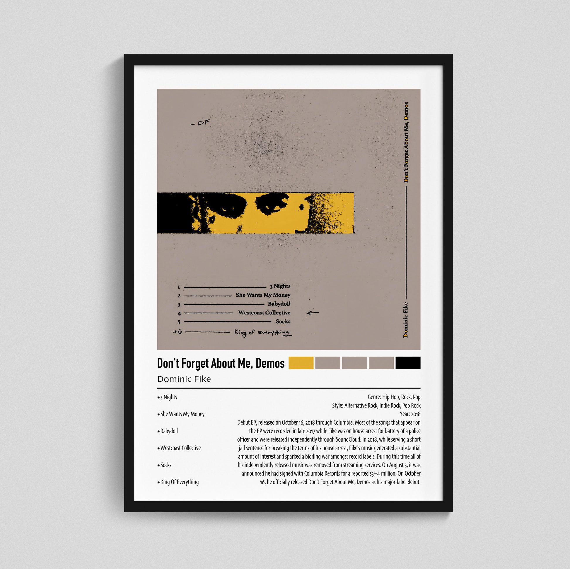 Dominic Fike | Don't Forget About Me, Demos | Custom Album Cover Poster Print